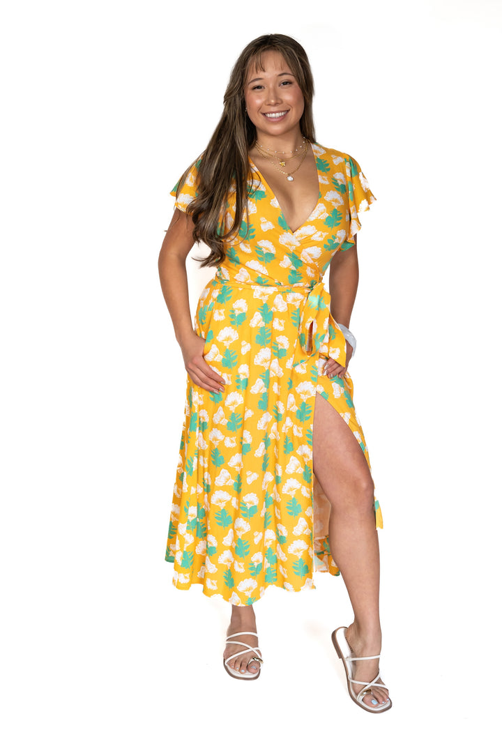 Add the spirit of aloha to your day with our Avaea Wrap Dress. Light, airy, and made for movement, this delicate silhouette ties at the waist and flutters with every step. This is your go-to for everything from morning markets to moonlit dinners.