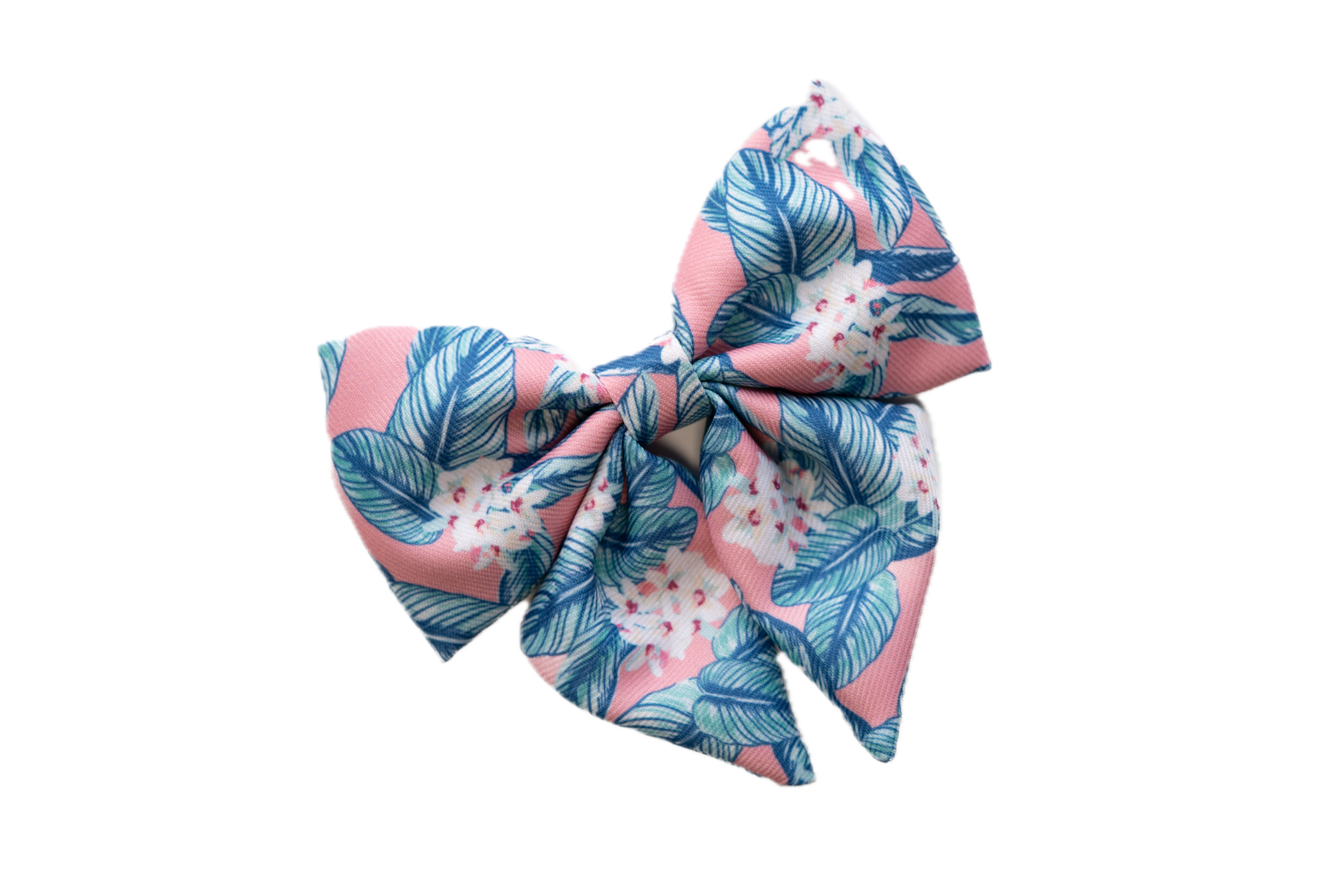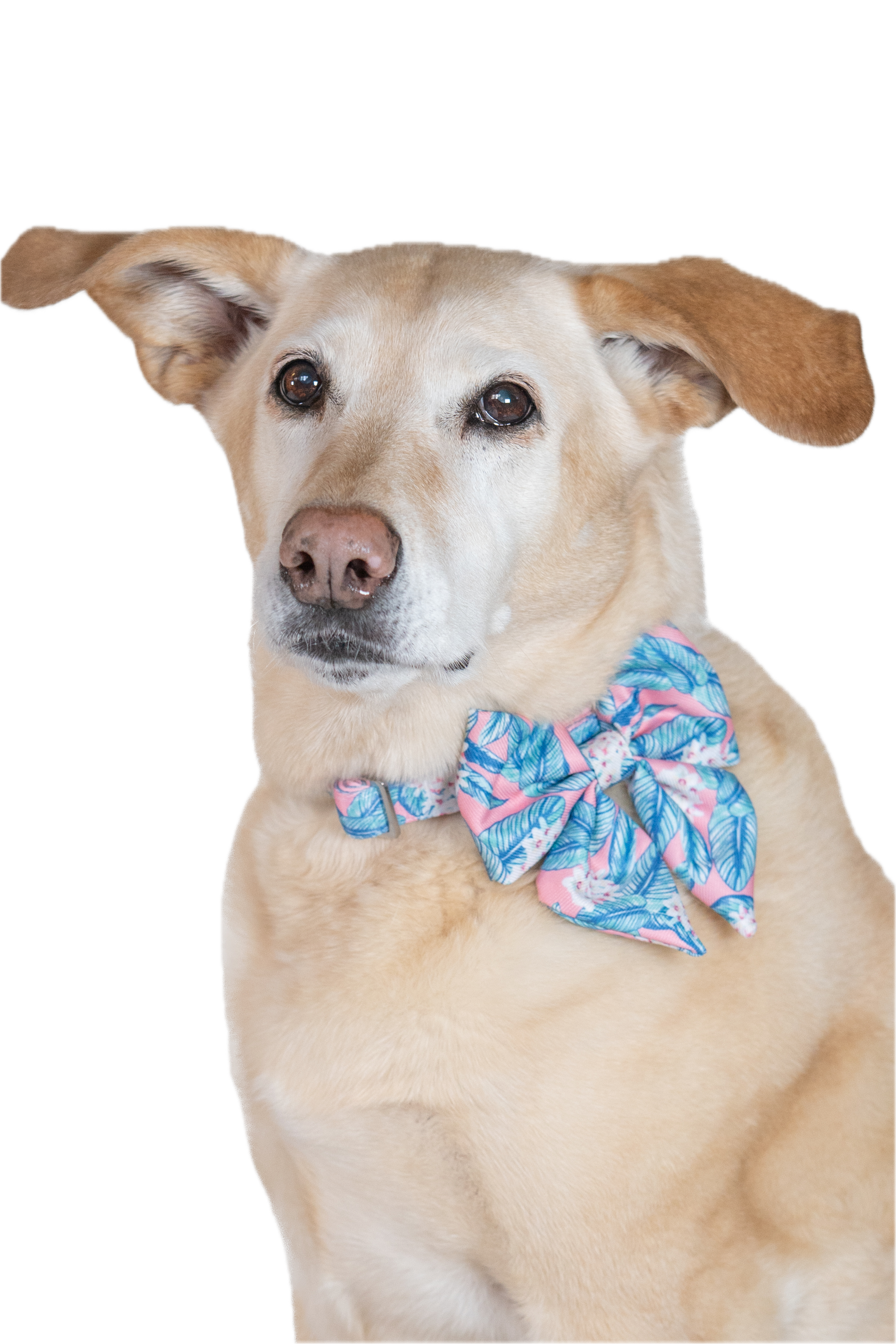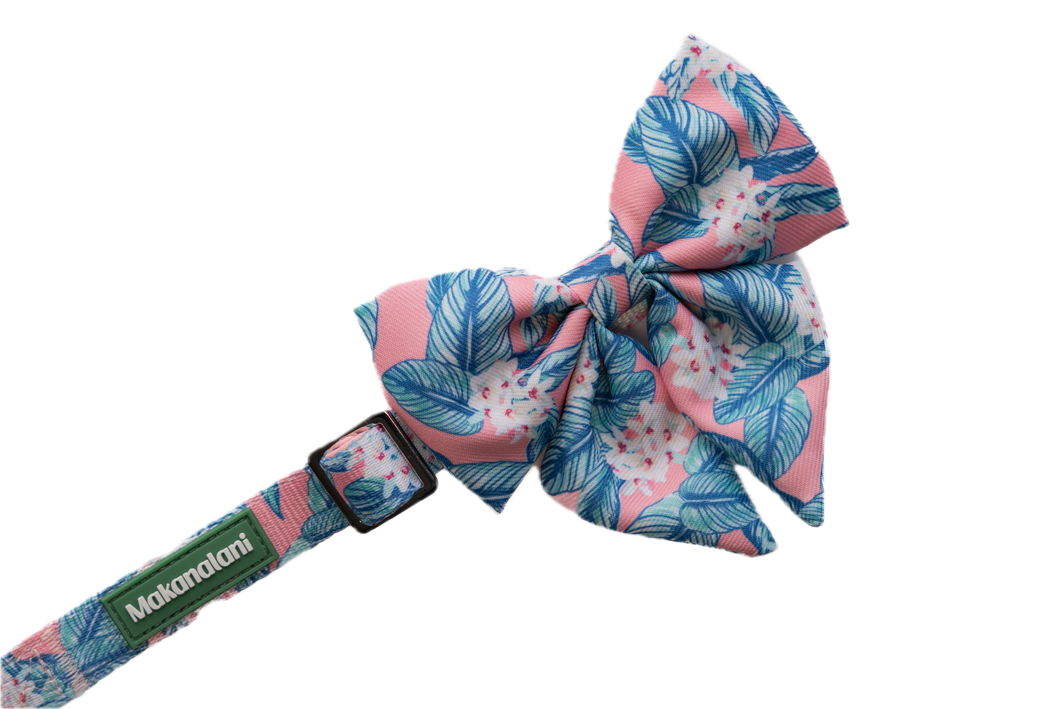 Designed for the stylish pet, the bow adds a touch of sophistication to the relaxed island print, making it versatile for casual strolls around the neighborhood as well as dressy family occasions.