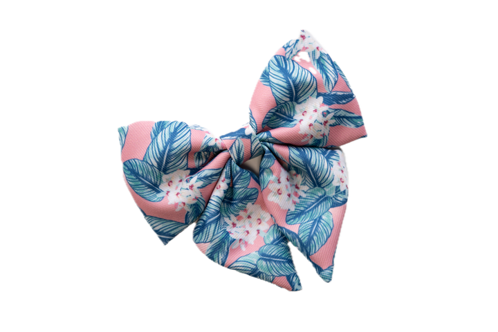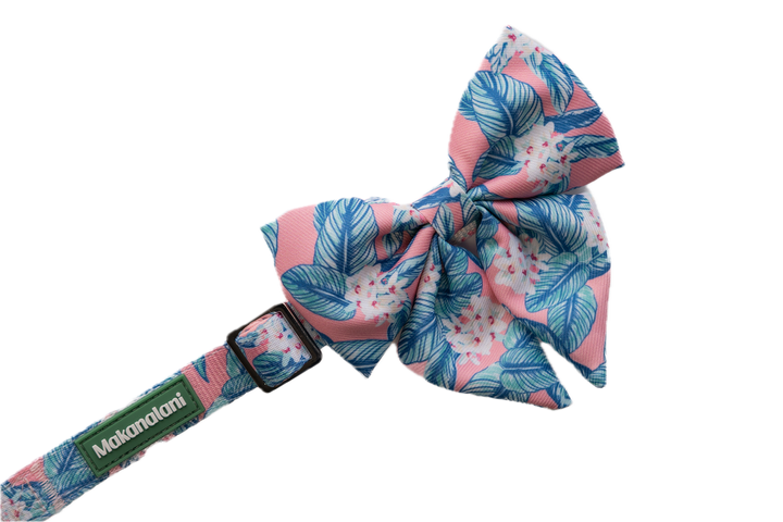 The Palm Floral Bow Collar Set comes in multiple sizes to fit most pets. The design features our signature Hawaiian prints — perfect for pets with big personalities and even bigger aloha spirit. These bow collars will transport your pet to the tropics. It is the perfect accessory for the furry family member who brings sunshine wherever they go.